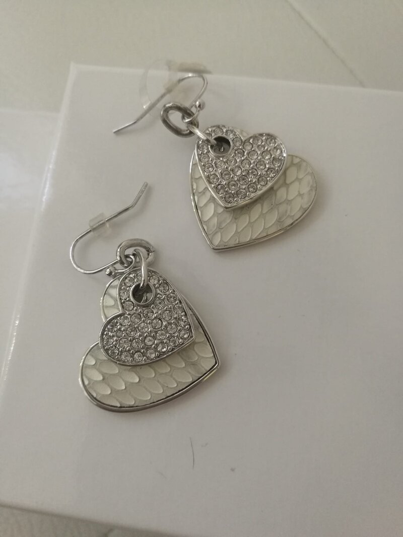 Orecchini donna Guess in acciaio con cuori pendenti, lunghezza 4 cm.